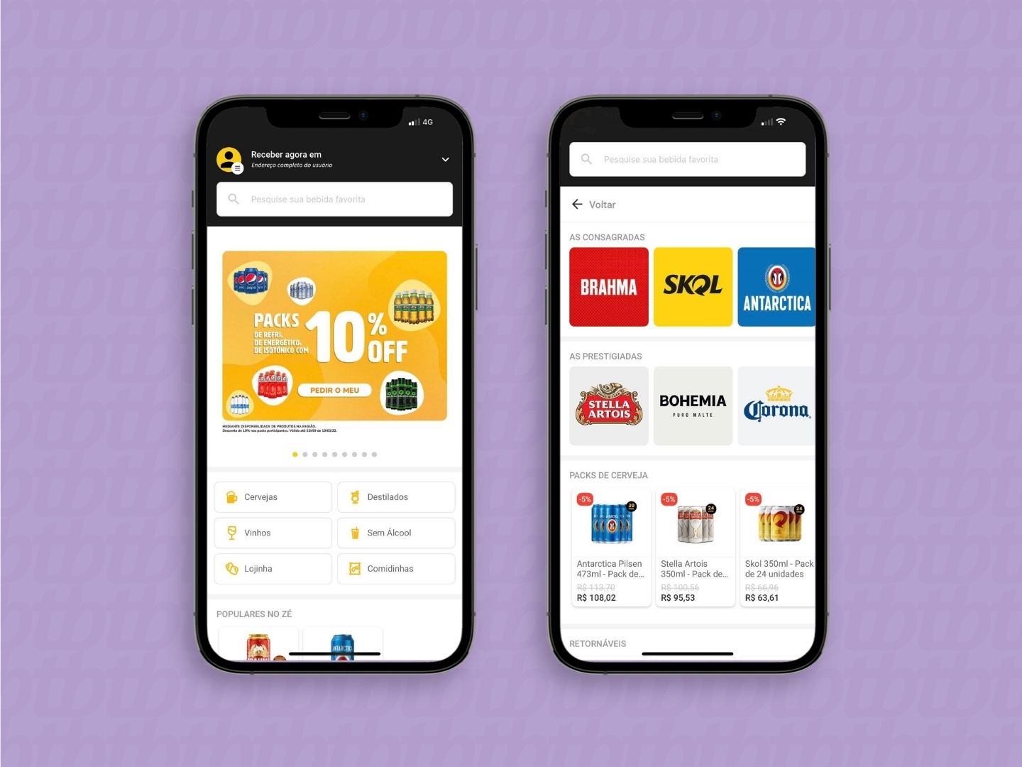 1. Choose where you want to receive your drinks; 2. Choose from beers, wines, spirits, soft drinks and juices and add to the bag (we even have snacks, coal and ice if you need it); 3. If you have a coupon available, just add it to the bag; 4. Choose the payment method (you can pay when you receive the order), confirm the purchase and wait for.