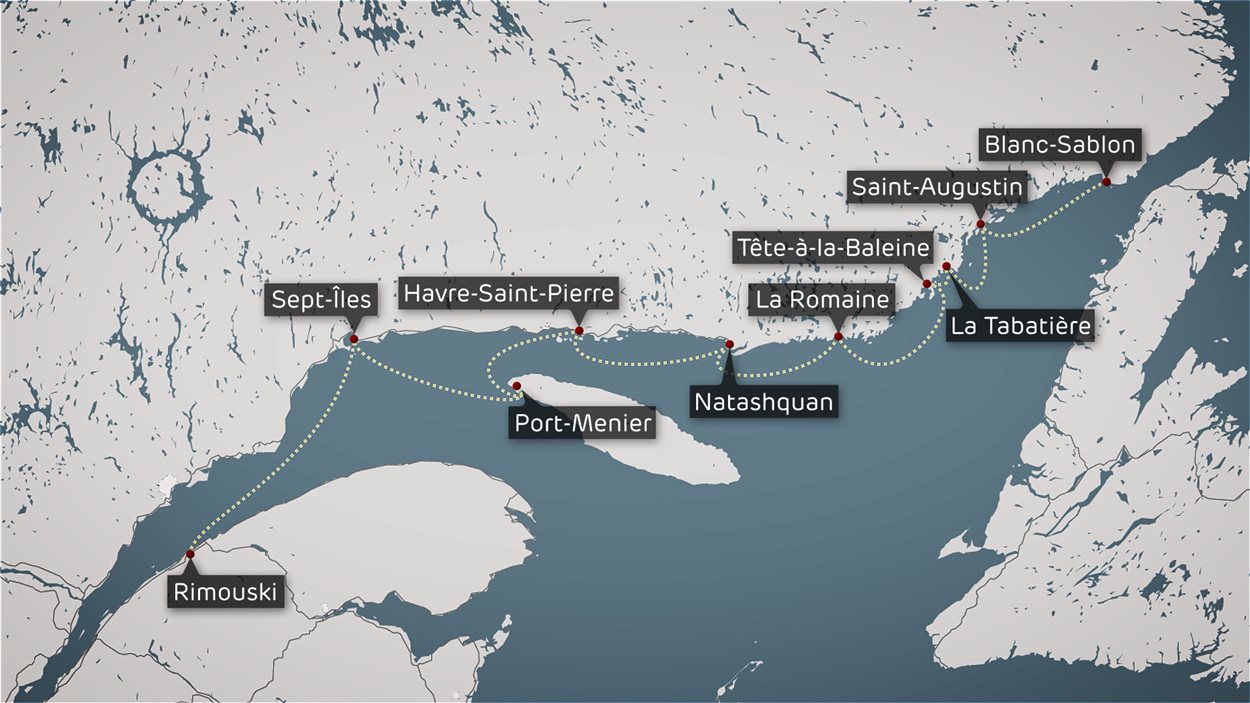 Rimouski à Port-Menier 1. Au port de Rimouski, installez-vous à bord du navire en attendant le départ, prévu pour 21 h 30. Après avoir traversé le Saint-Laurent pendant la nuit, vous atteindrez Sept-Îles, en Côte-Nord.Une escale d'environ 4 heures vous permettra de visiter la ville, dont la promenade du Vieux-Quai, ainsi que ses principaux attraits, tels que le Vieux-Poste, qui.