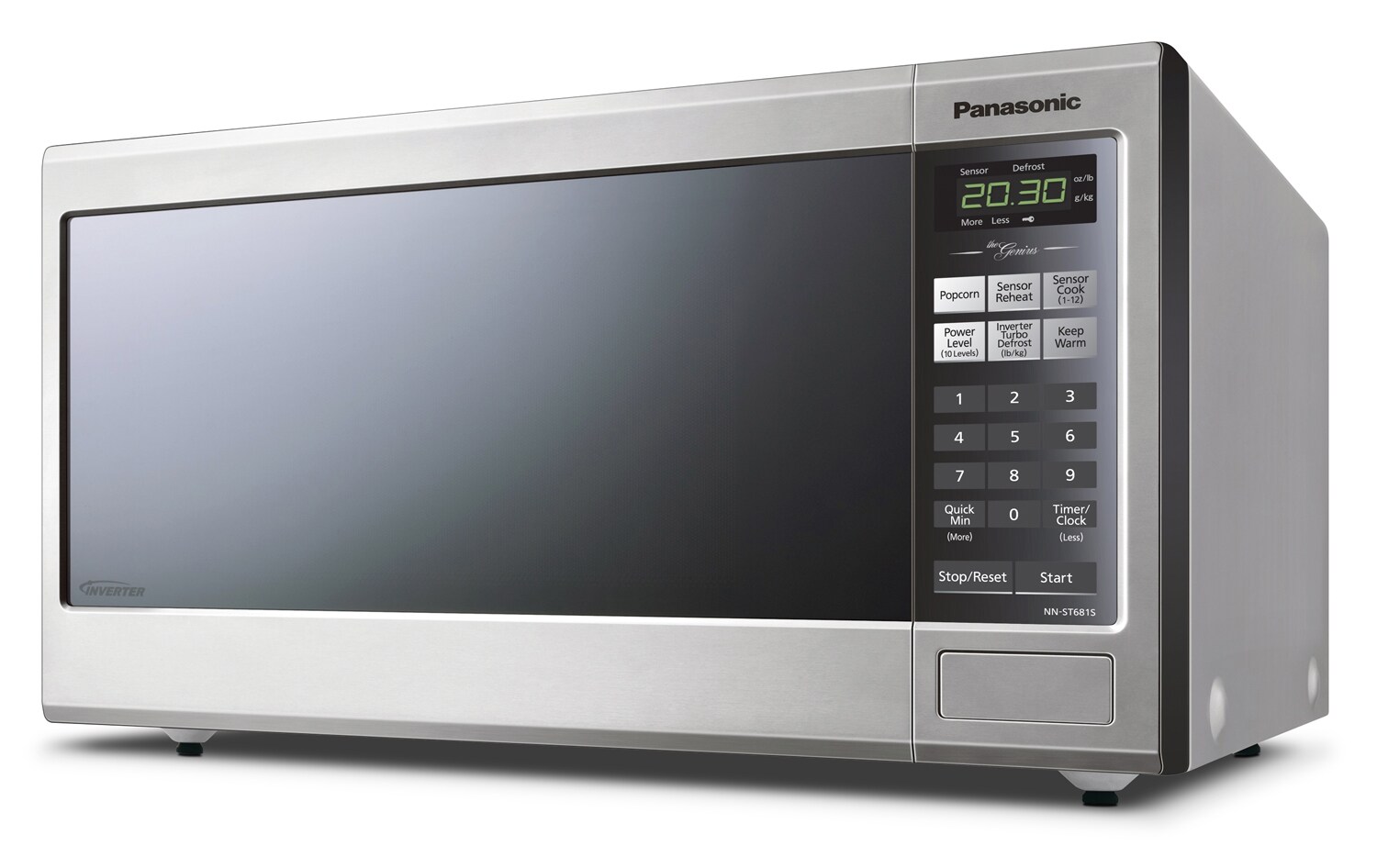 The 1.2-cubic-foot unit with its 13-inch turntable perfectly cooks and evenly heats your food with Panasonic's blazing Inverter technology. At the touch of Panasonic's Genius Sensor Cooking button, the microwave takes the guesswork out of heating up a great meal, by automatically setting power levels and adjusting cooking or defrosting time.