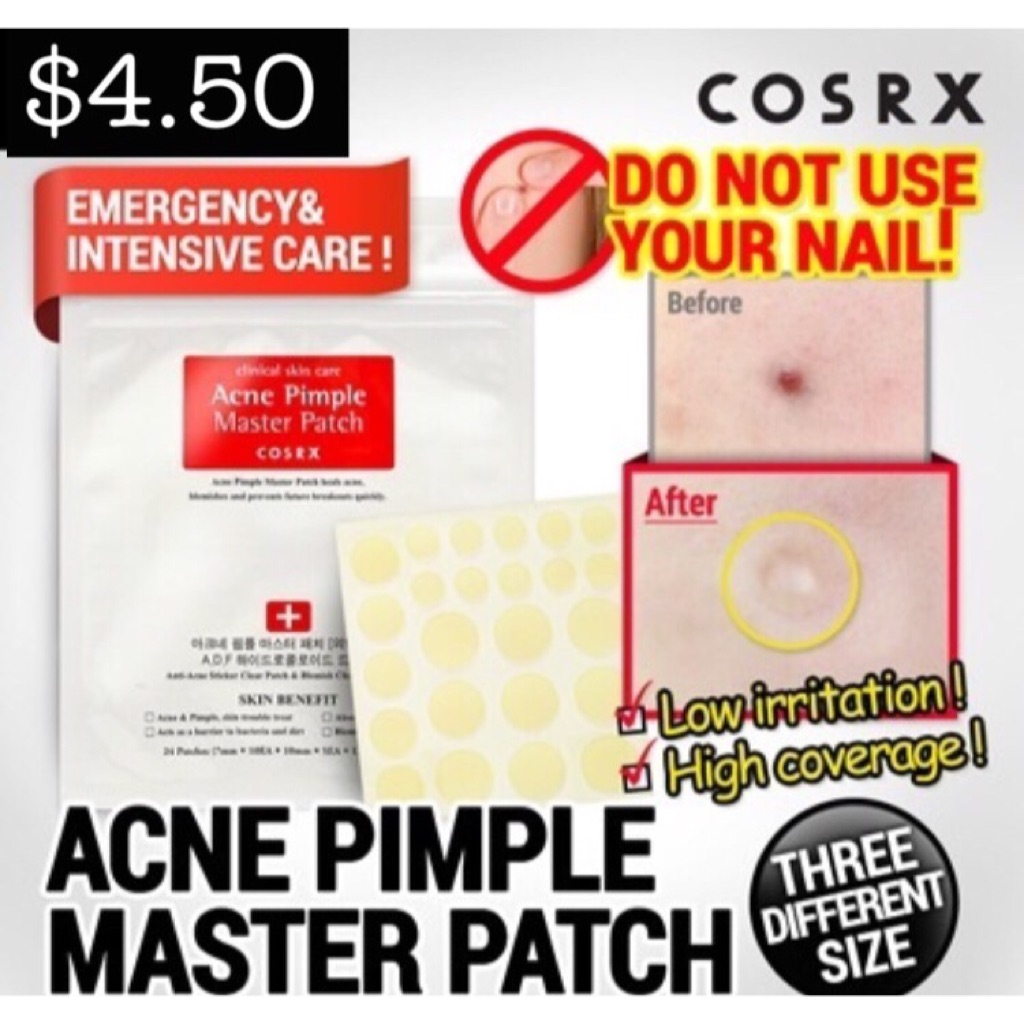 COSRX Acne Pimple Master Patch- See it work! COSRX. Image Unavailable. Image not available for Color: To view this video download Flash Player ; VIDEOS ; 360° VIEW ; IMAGES ; COSRX Acne Pimple Patch Absorbing Hydrocolloid Original 3 Size Patches for Blemishes and Zits Cover, Spot Stickers for Face and Body, Not Tested on Animals (72)