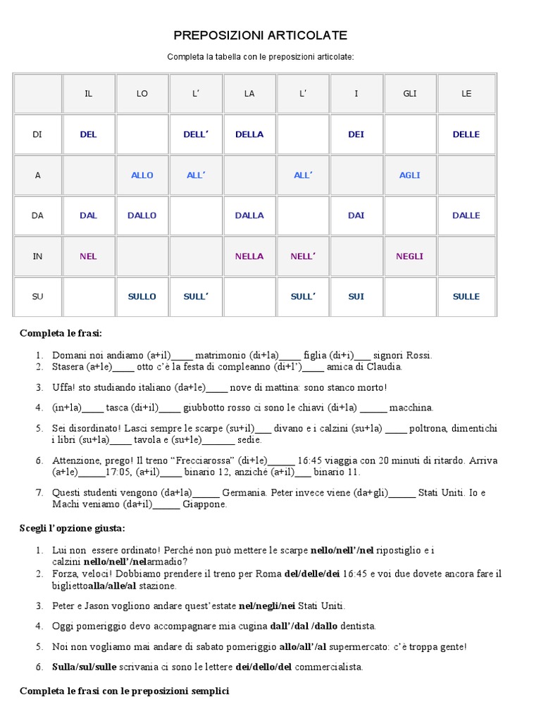 PREPOSIZIONI ARTICOLATE Esercizi PDF