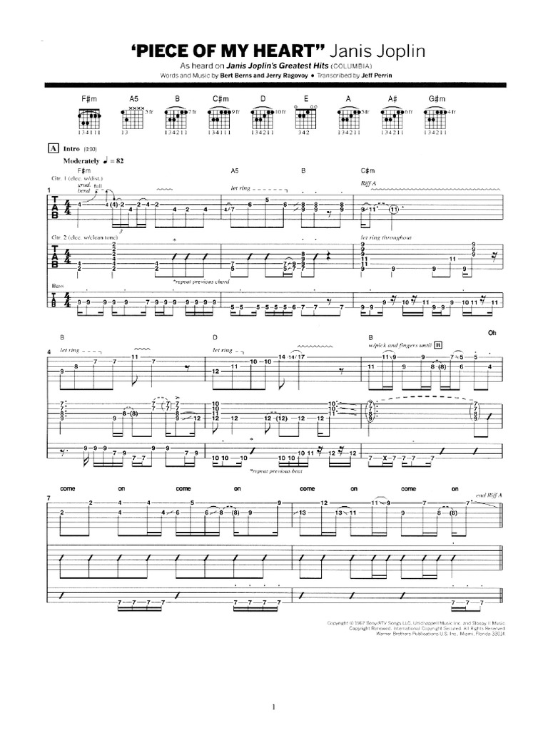 Piece of My Heart Sheet Music Piece of My Heart Score •