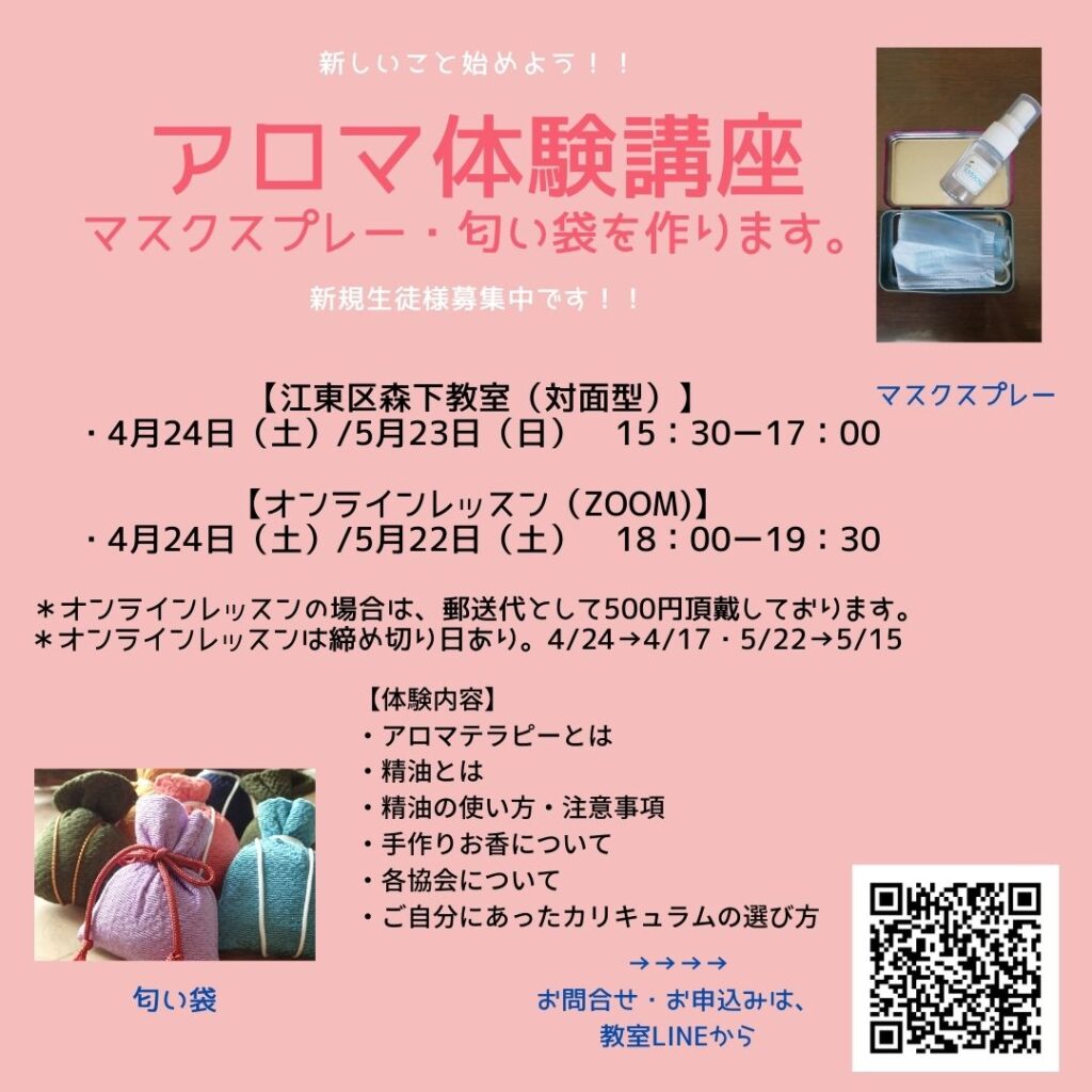 4月・5月体験講座のご案内 ガットアロマテラピースクール・アロマ資格取得・手作りお香(東京)