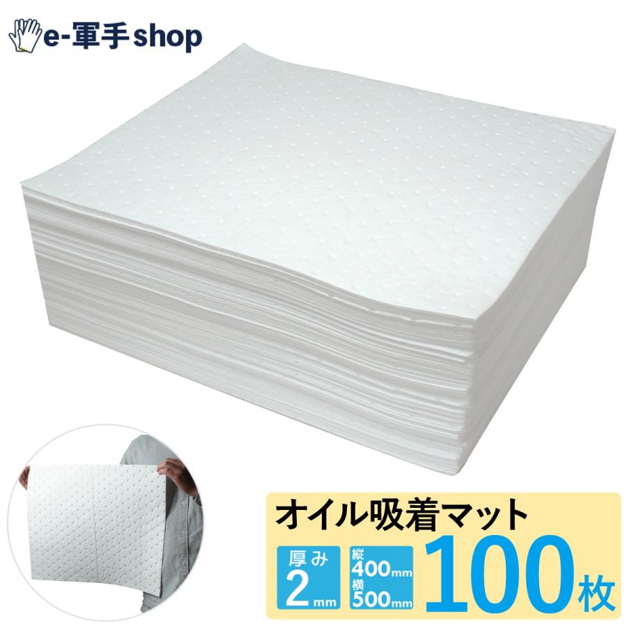 オイル吸着マット 100枚 厚み 2mm 縦400mm 横500mm 油吸い取り 業務用 自動車整備 機械油 油防止 油吸収シート 床 足場 90.11WS60201 eg2mm100e