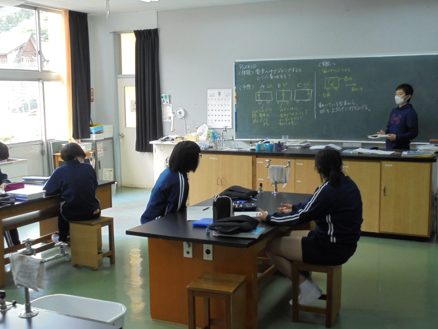 5/20 電車の中でジャンプするとどこに着地する?(3年) 上野村立上野中学校