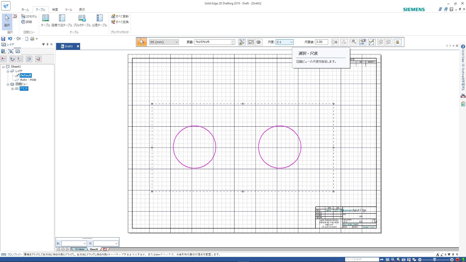 てけの備忘録的ページ SOLID EDGE 2D DRAFTING の使い方 1 縮尺変更