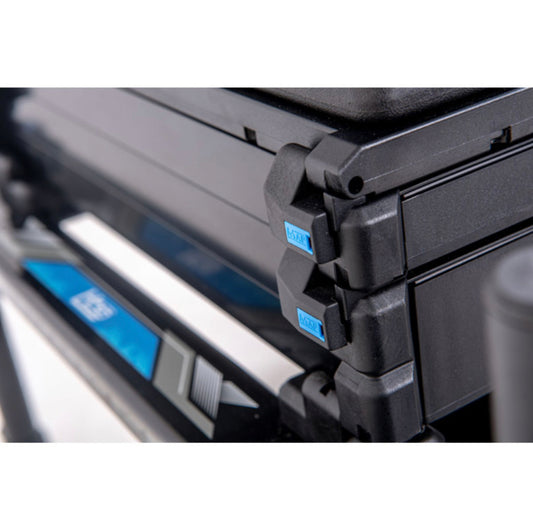 This stunning new addition is ultra-stable due to the 36mm diameter legs and compliments the range perfectly. Standard package includes: 1 x Shallow drawer unit. 1 x Deep drawer unit. 1 x Padded carry strap. Features: 36mm diameter legs with telescopic Inners. Legs include threaded screw inserts for accessories. Lightweight aluminium frame.